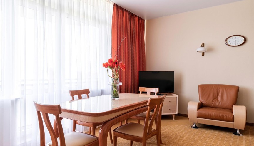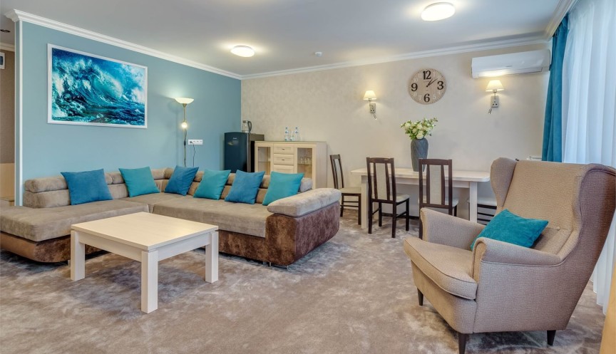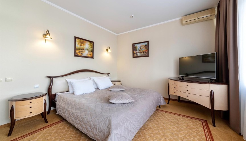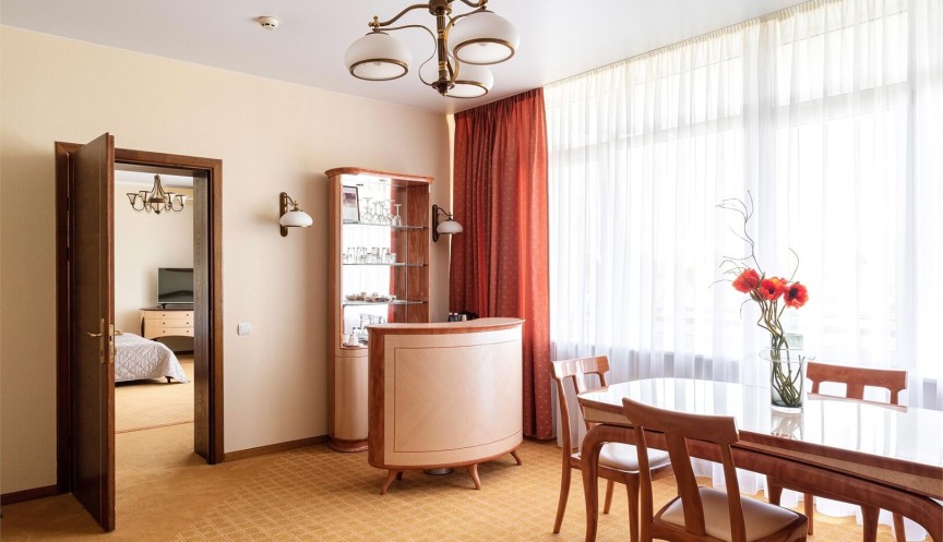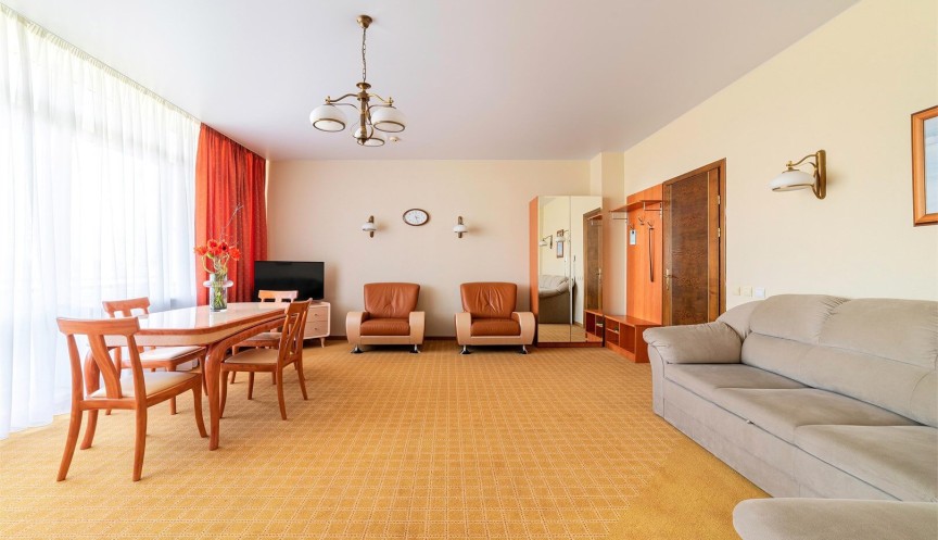 Номер повышенной комфортности состоящий из гостиной и спальни. Расположен на 6 и 5 этаже.